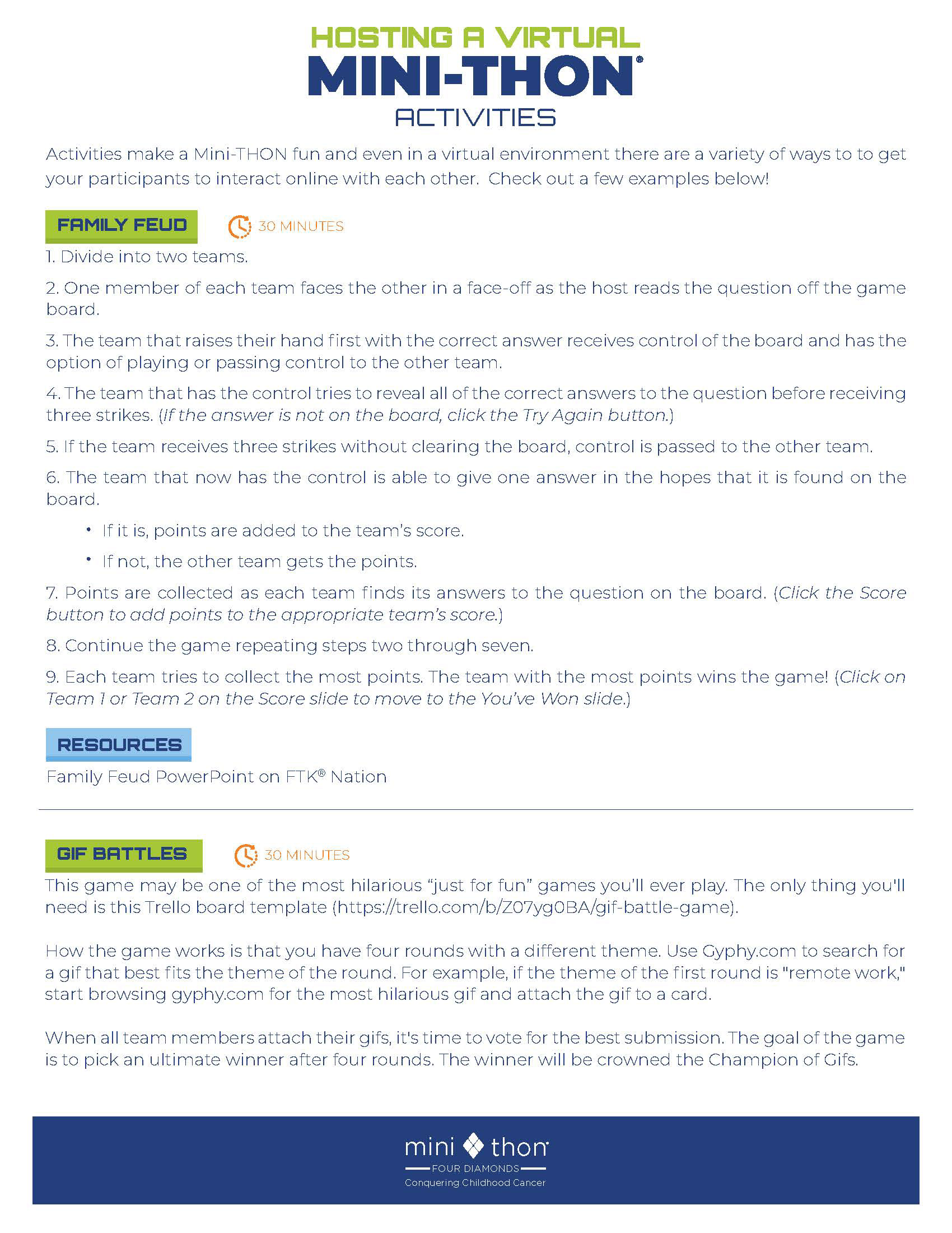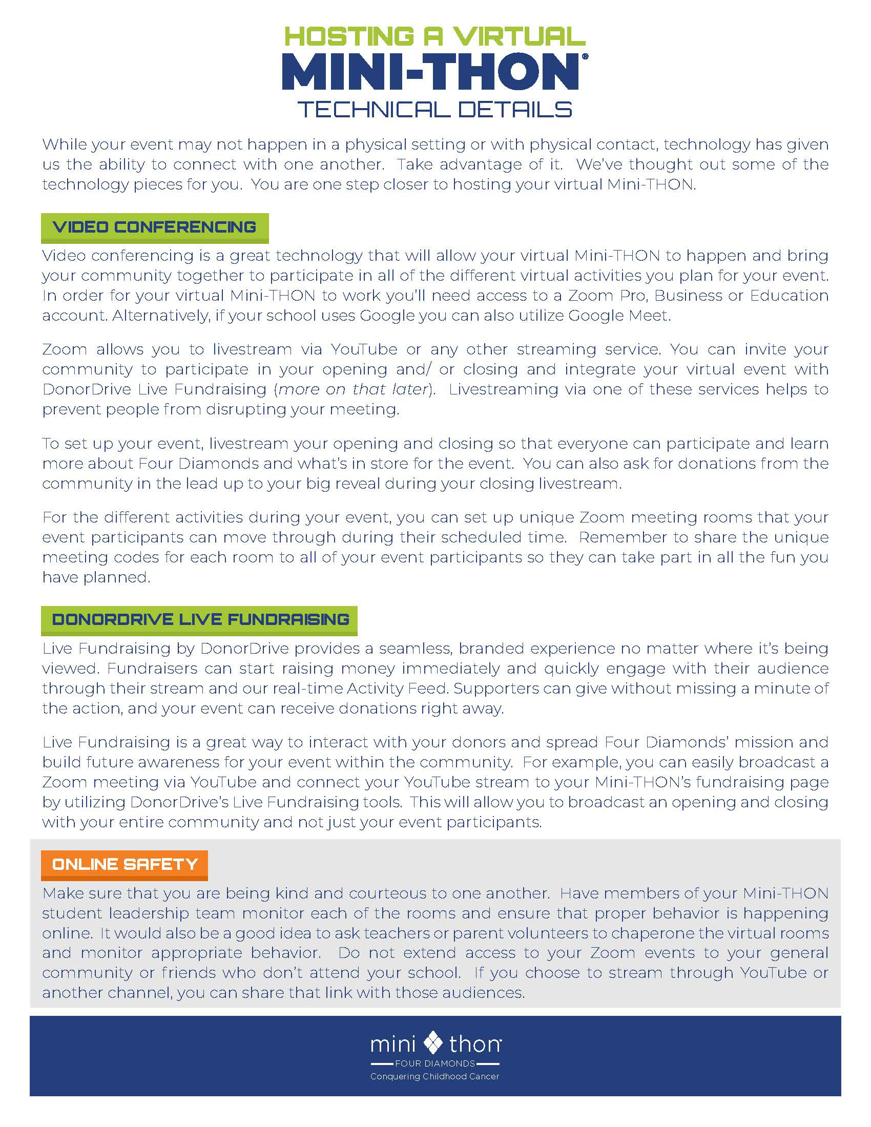 As the COVID-19 pandemic hit Four Diamonds Mini-THON program by cancelling hundreds of events I stepped up and developed a strategy and plan to have events hosted virtually.
